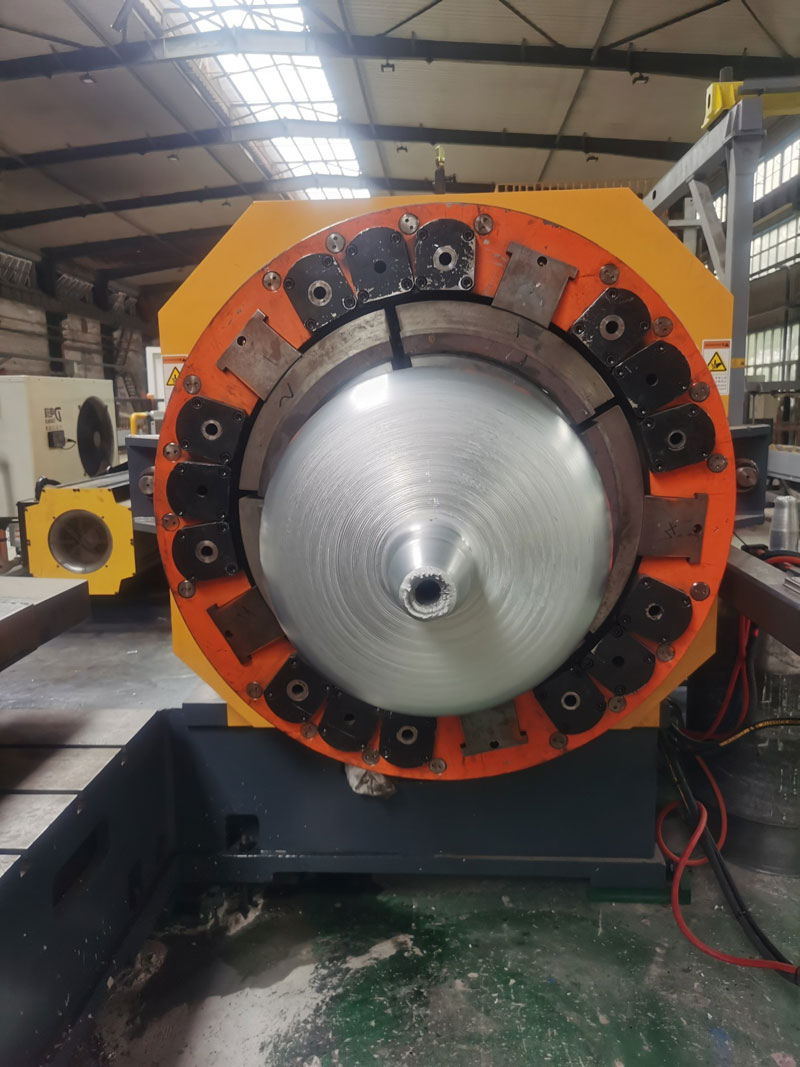 我们公司最新推出铝制高压气瓶收口旋压机,用于制备铝制大口径气瓶的收口、修口等工序。